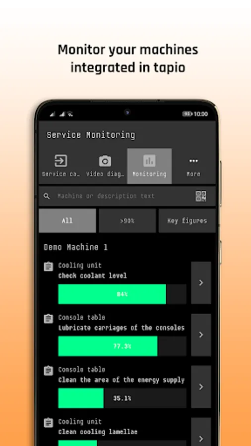 • Use the maintenance overview with all your service objects from your entire production for integrated tapio partners.