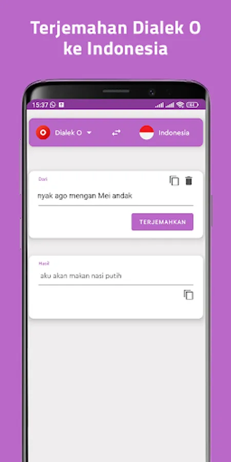· This translation app is completely free. You can translate words and sentences in two ways, from Lampung to Indonesian and from Indonesian to Lampung. This useful translation app offers fast and accurate translations.