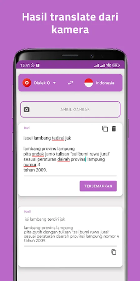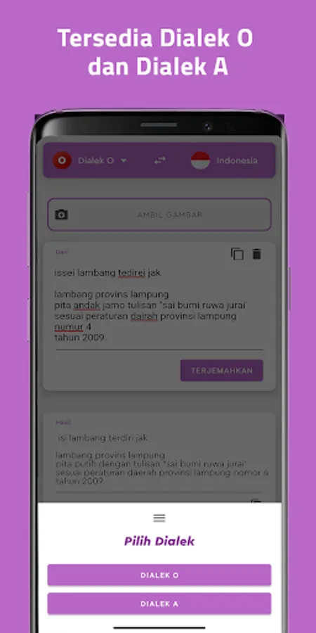 · The Lampung Language Translator application allows you to do translations just by taking a photo, no need to bother typing the text