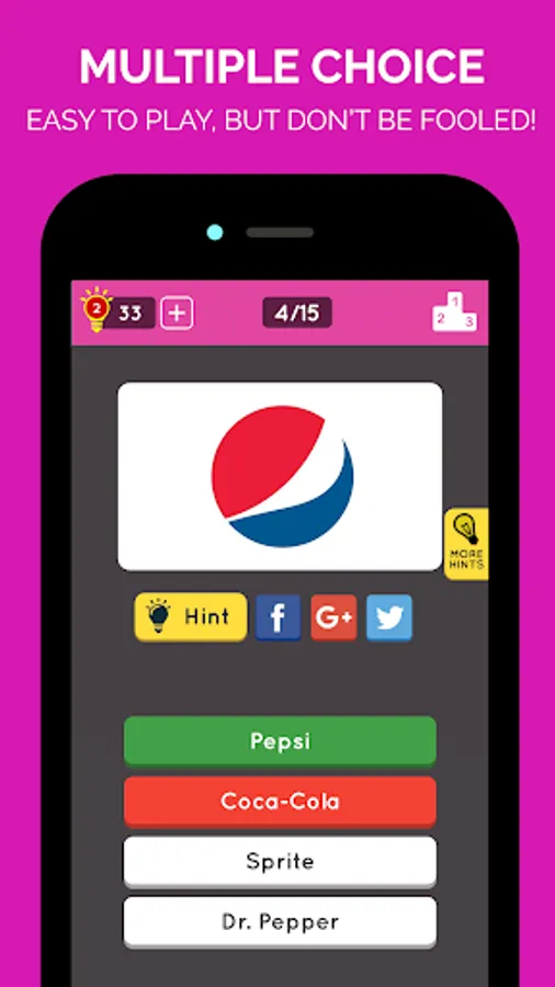 Brand Logo Quiz progress is synced with Facebook and Google Plus, so you can play on your phone or tablet.