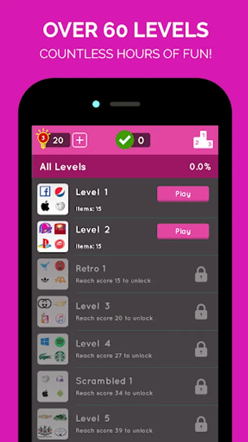 Hundreds of logos organized in over 50 levels for endless fun
