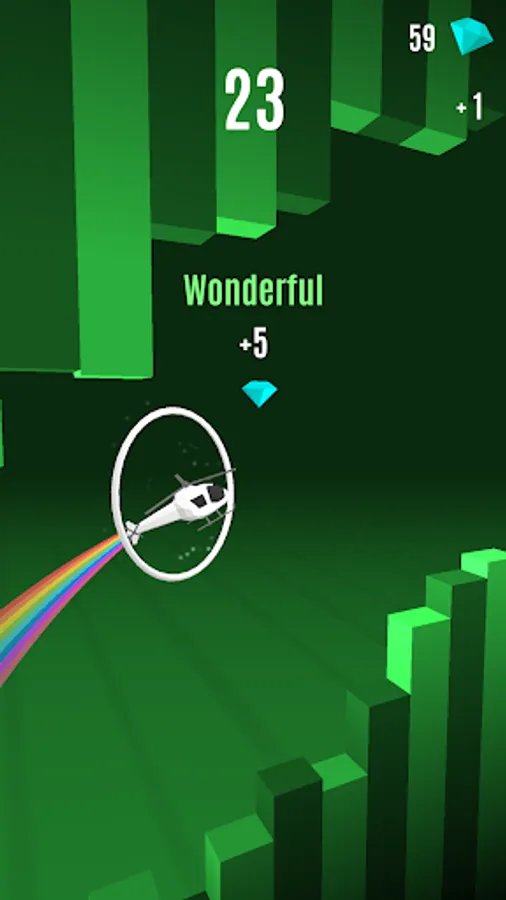 Collect gems by getting a great streak of going through rings. Use those gems to unlock skins and trails, then customize your copter and give it a personal touch.