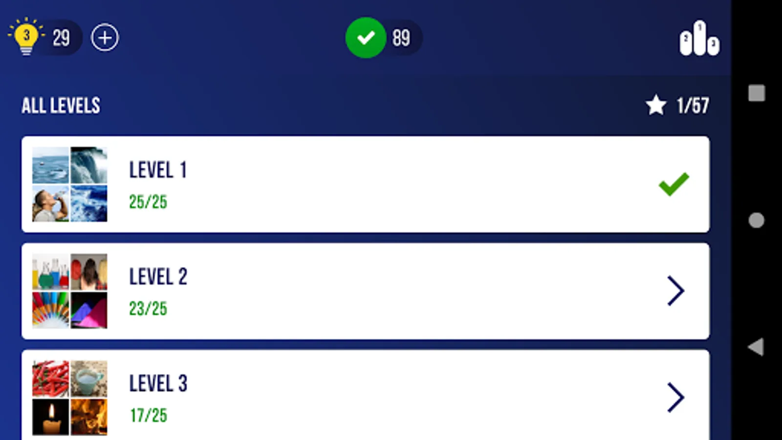 Each word puzzle contains four pictures that have one word in common. Play hundreds of picture puzzles that become more challenging as you progress. The more word puzzles you can solve, the more levels you will unlock.