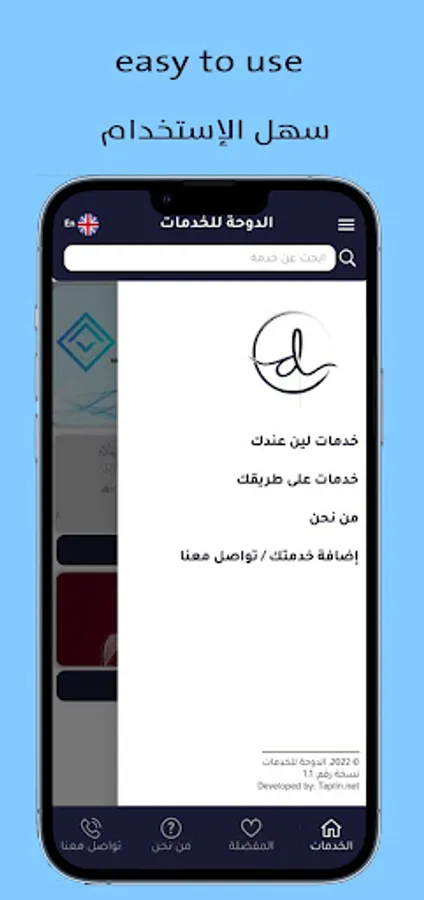 1- Multilingual: The Doha application supports Arabic and English services to facilitate the presentation of services to users.