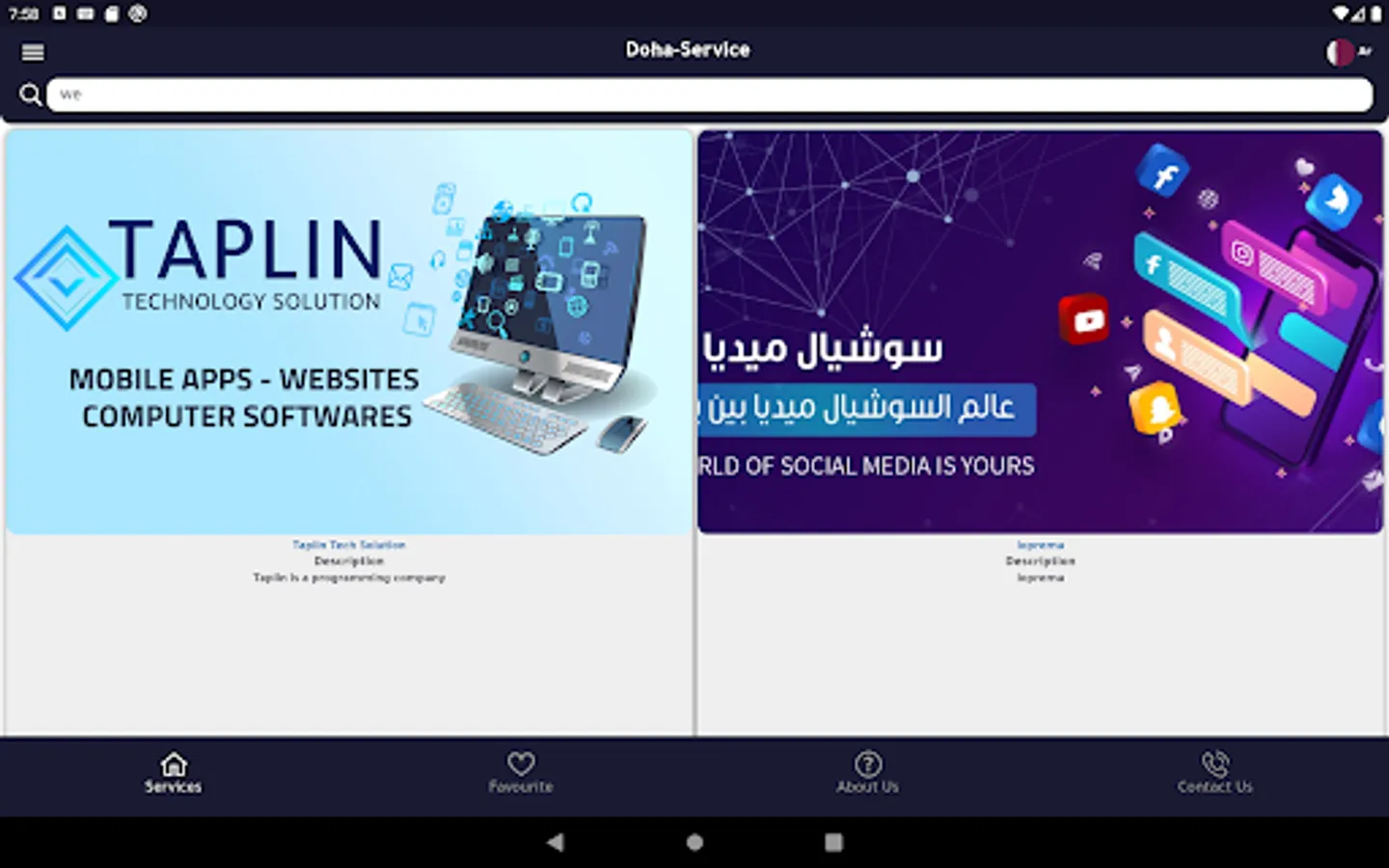 Doha Services is a platform launched to be the largest application that combines services in Qatar, where you can publish your own service and what you can do to attract the largest percentage of customers through the Doha Services application. The Doha Services application is a link between the service provider and the customer.