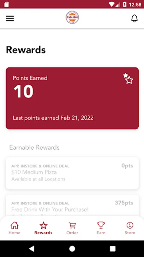 Andiamo Wood Fired Pizza App - Earn and track your rewards at participating stores