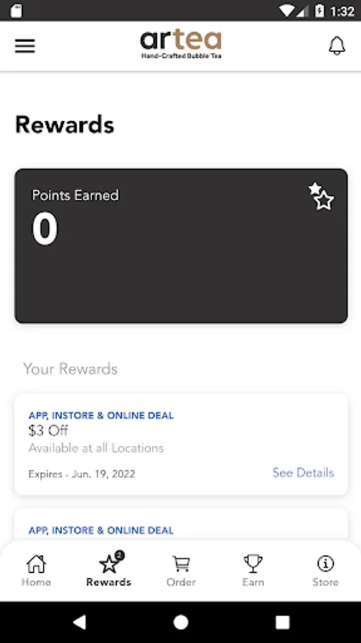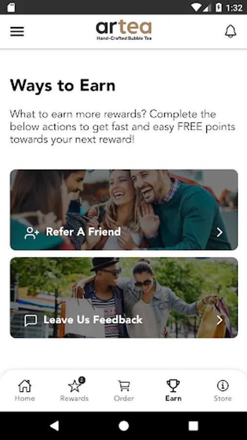 Artea Bubble Tea Rewards App - Earn and track your rewards at participating stores