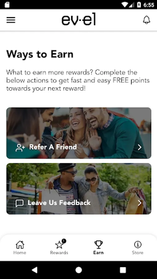 EVEL Drinks and Eats App - Earn and track your rewards at participating stores