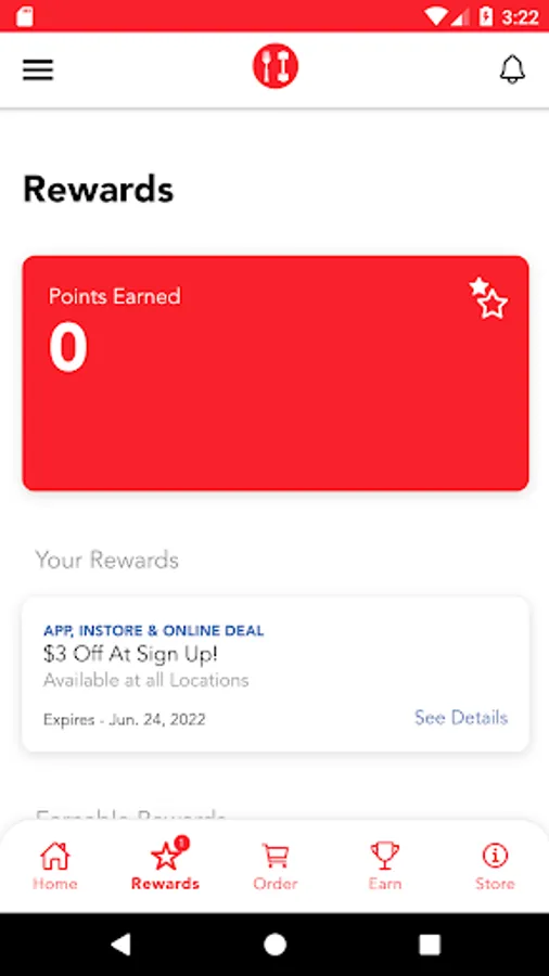 Earn Points - Earns points with every purchase in-store or via mobile app