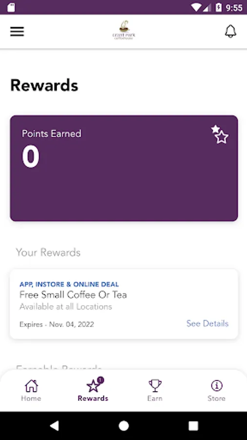 Grant Park Coffeehouse App - Earn and track your rewards at participating stores