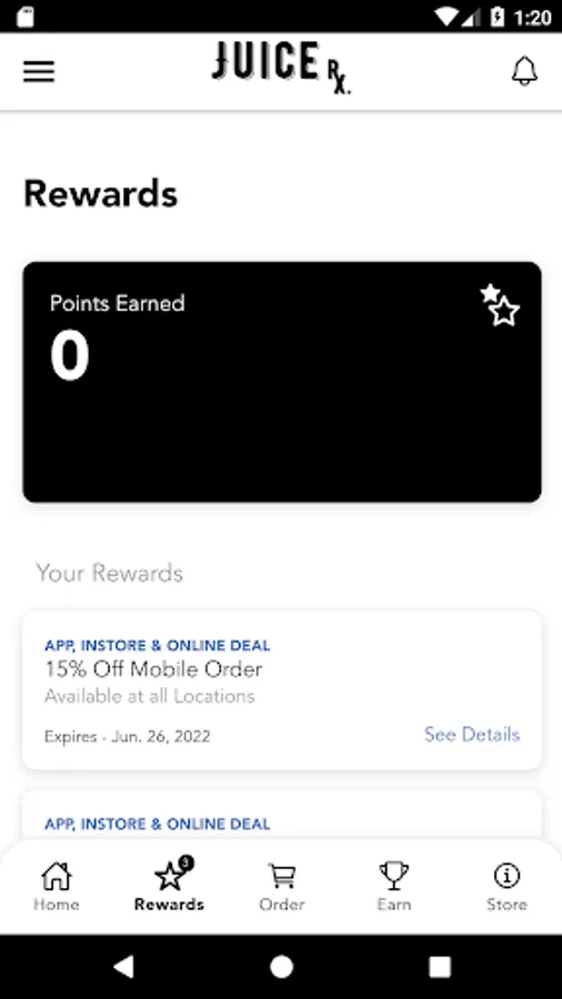 JuiceRx Rewards App - Earn and track your rewards at participating stores!