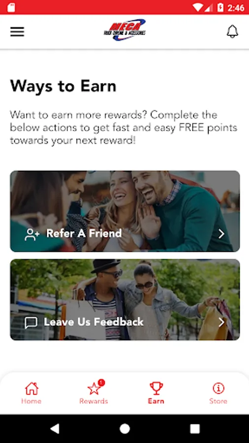 • Refer friends through app