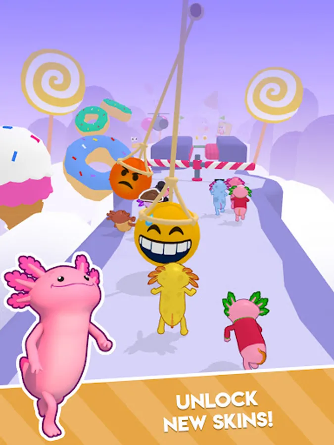 Race other axolotls and avoid an abundance of hazardous obstacles to become the axolotl star. Run, race, slide, jump, fall, flip, punch, and blast through the chaotic levels, reach the finish line first and do the victory dance.