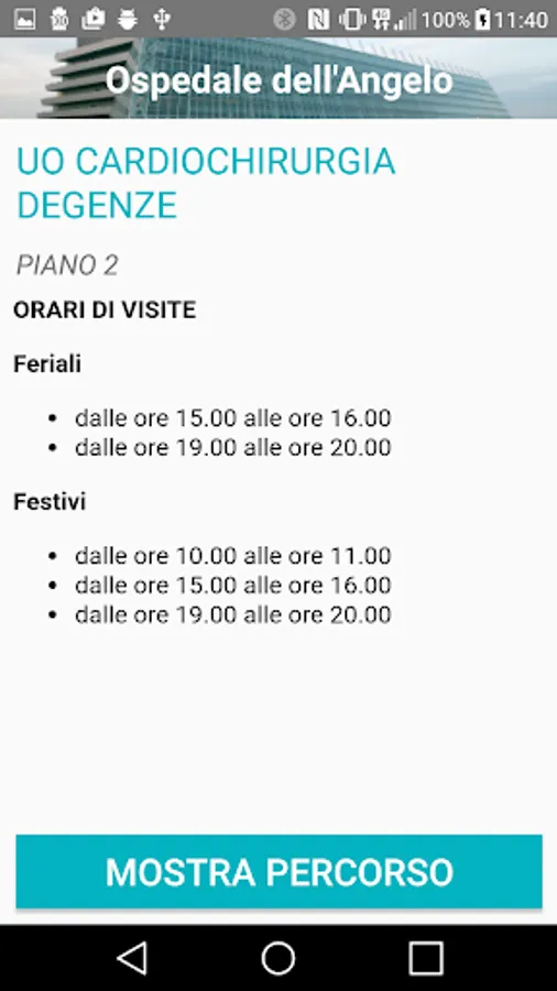 MyHospital Serenissima allows moving guided inside the hospitals of Mestre and Venice. Useful to those who went to the Hospital of the Angel in Mestre or Venice Civil Hospital to visit a hospitalized person, but also to those who, in the hospitals, should pay a visit or exam. MyHospital guides you in the Departments, in clinics, in areas dedicated to the examinations and the investigations. It also works without internet connection. It provides additional information (locations, times, addresses, contacts) on the services offered by the two hospitals, constantly updated.
