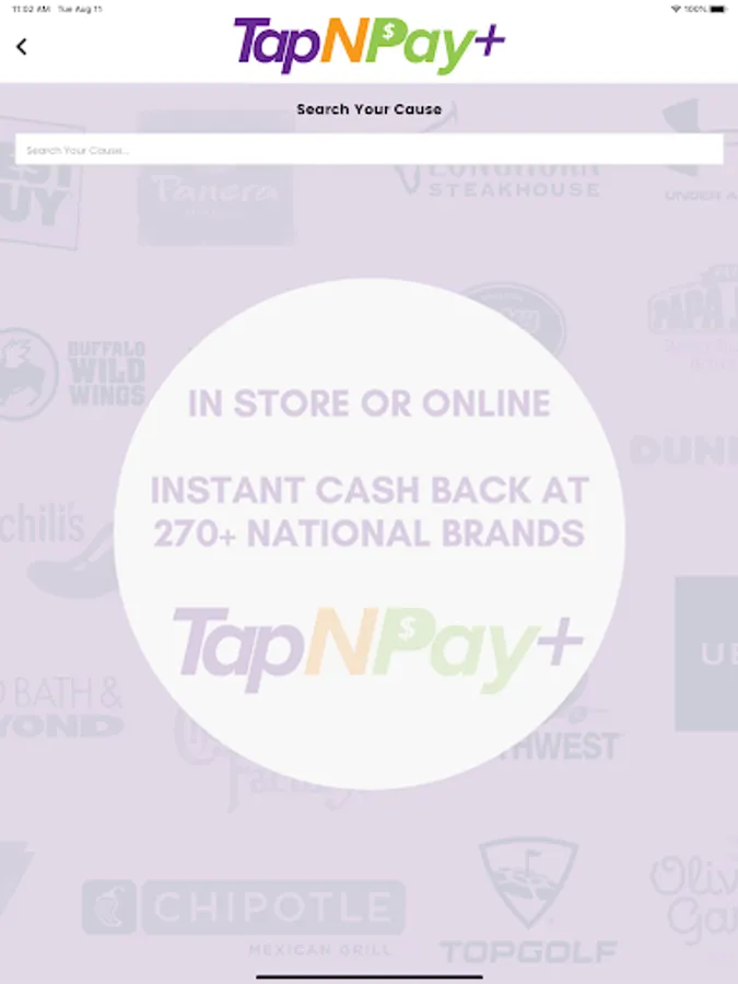 Our next-gen mobile pay technology is the Future of Funding! The TapNPay+ mobile app provides users with exclusive access to earn cash back instantly from any of our 270+ National Brand Partners. Simply Tap, Pay and Go on your way while earning cash back in-store or online and supporting the cause of your choosing. Each time you use TapNPay+, a donation is made from TapNPay+ directly to your cause! Whether you are a Non-Profit Organization, School District, University, or looking for a way to reward your internal employees, our technology is the perfect solution for all of your funding needs.