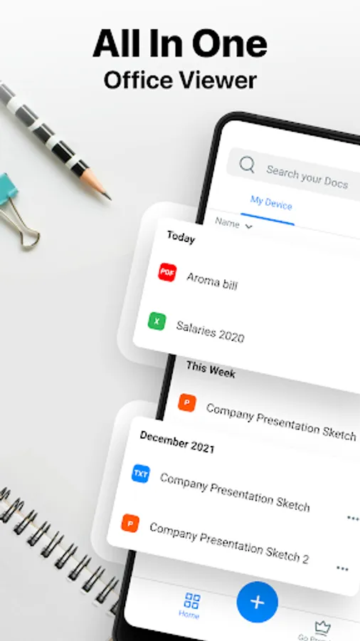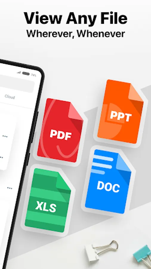 • Docx viewer, pdf viewer, ppt viewer and xls viewer ensure you stay on top of your files