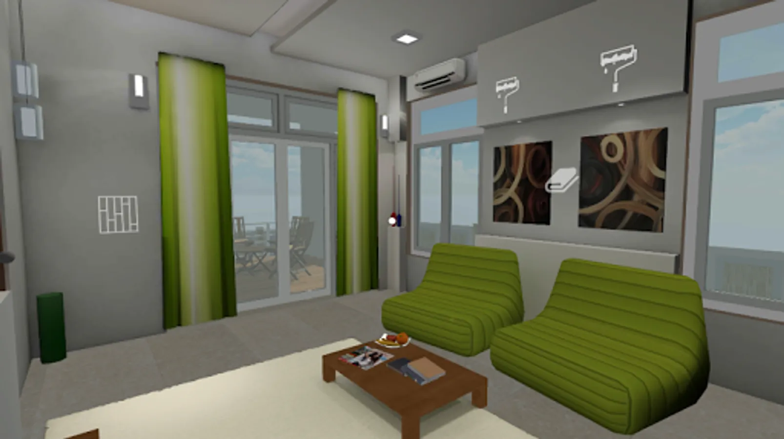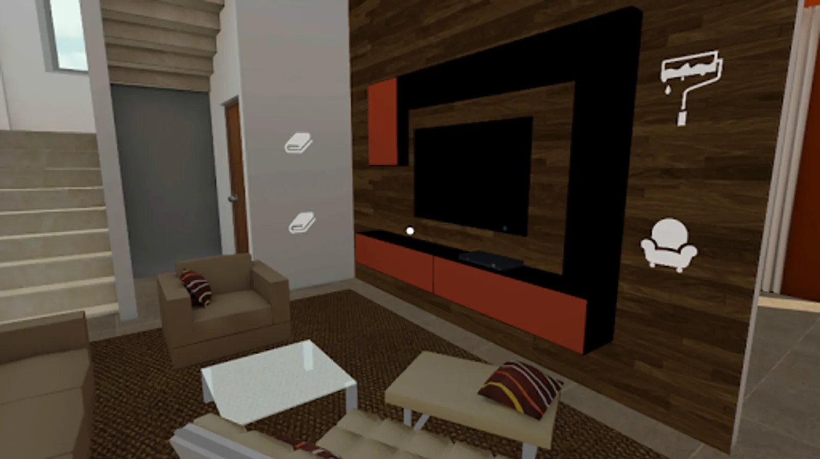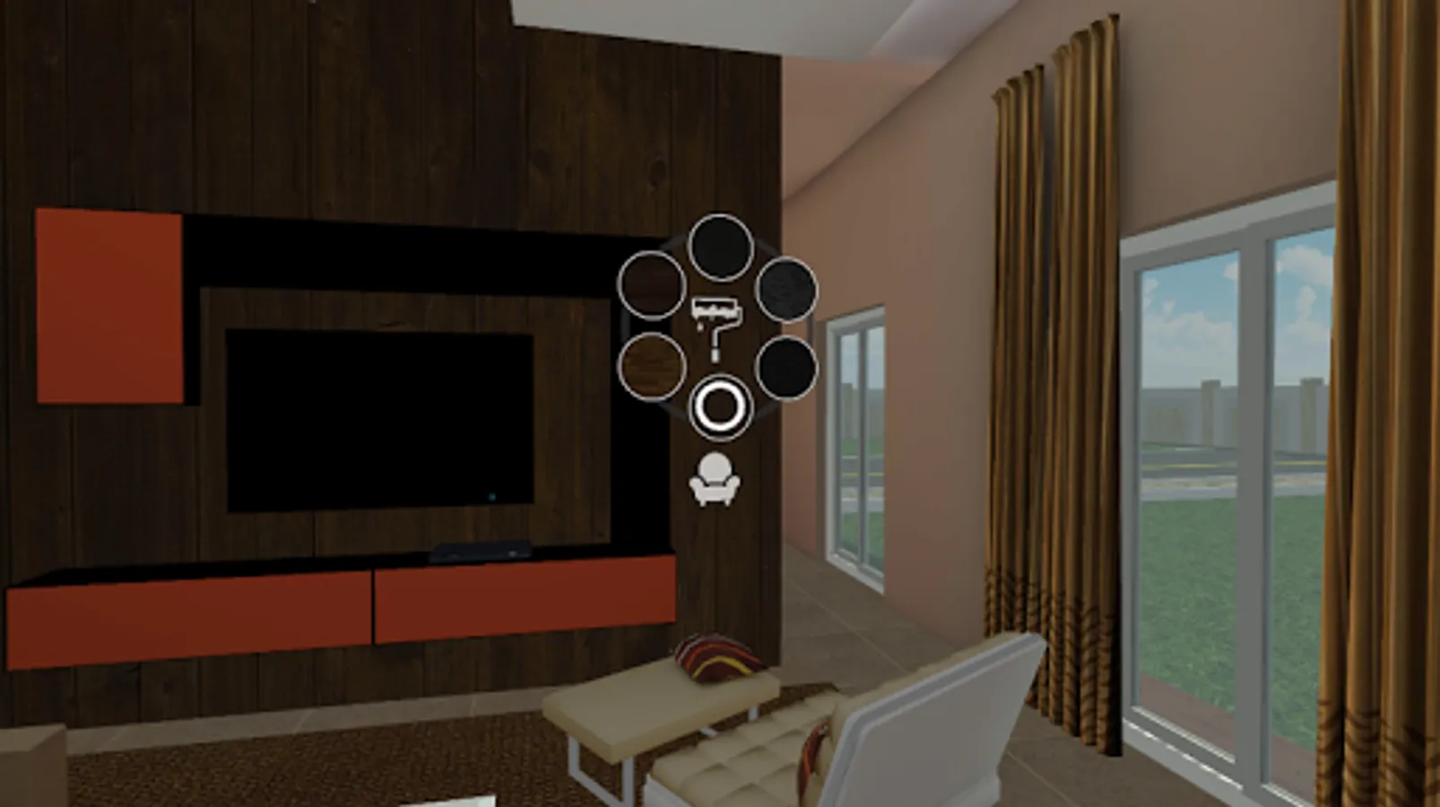 - Change materials and textures of walls, floors, furniture, etc. and select the one you prefer.