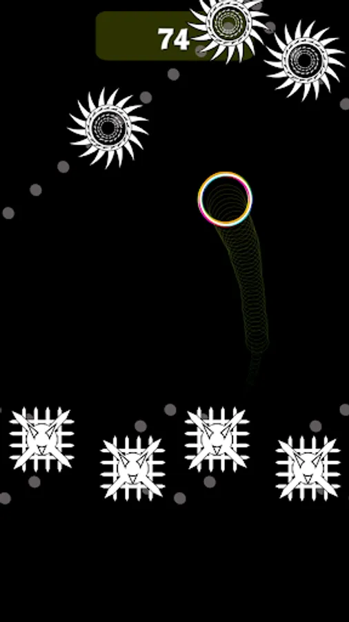 Move your finger up and up and go form the hurdles. The ring is composed of circle set which is running in hurdles from bottom to top. Keep holding your finger on screen and rise the ring up and upwards as much as possible.
