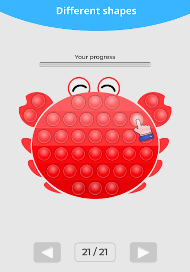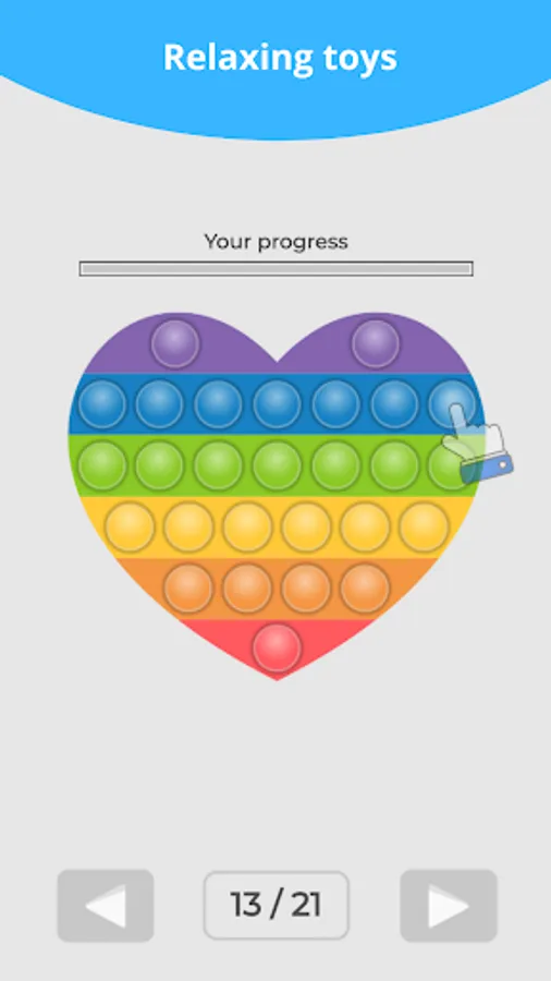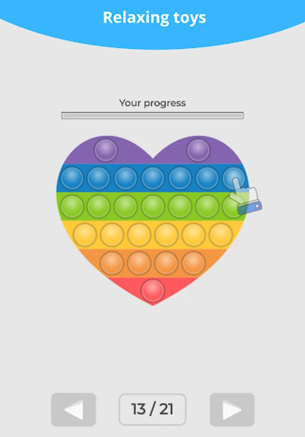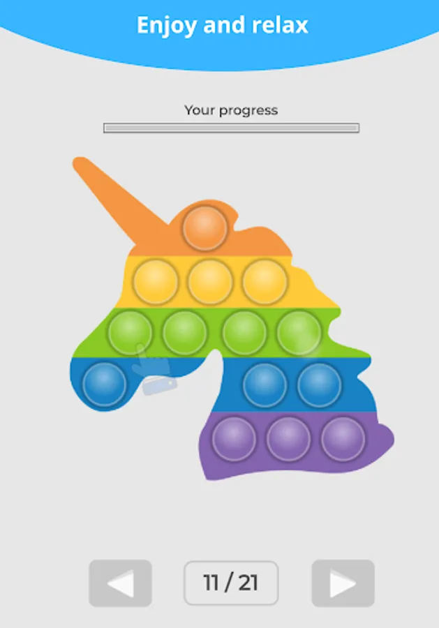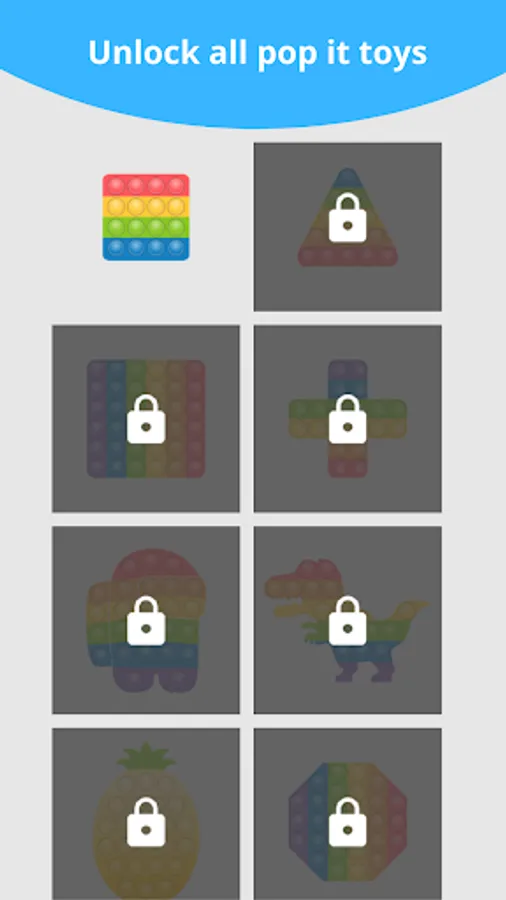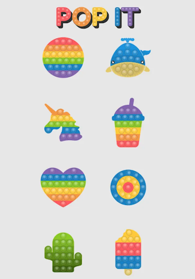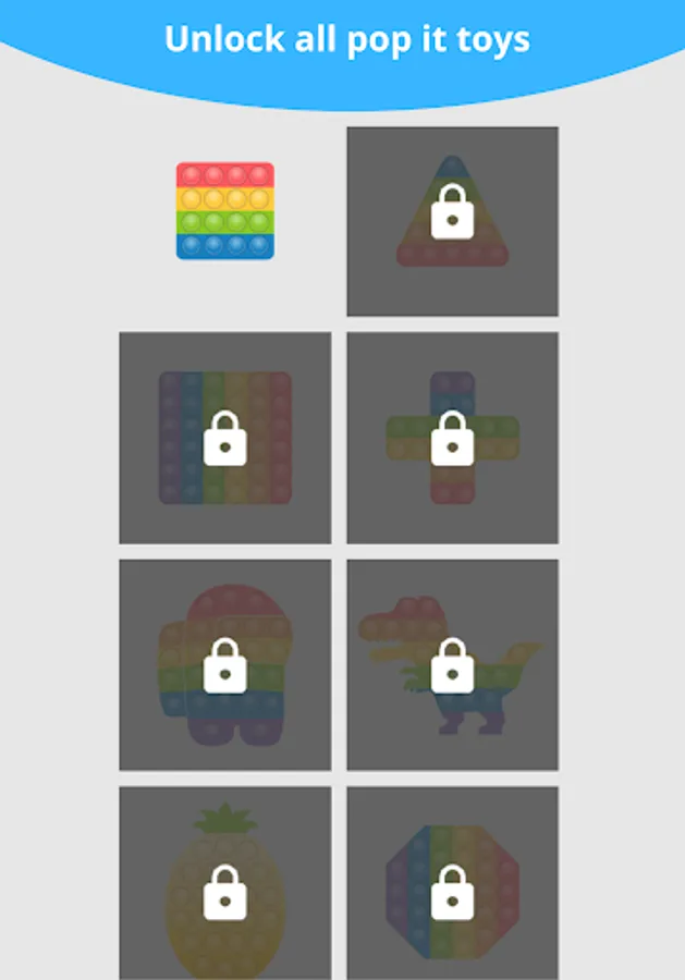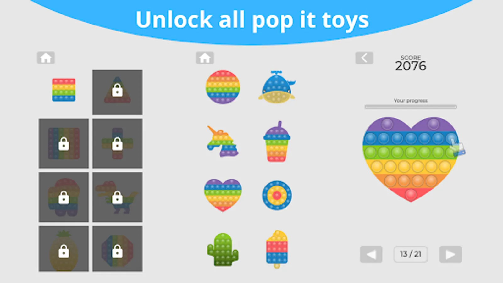 Advance in all the levels, every time you finish a pop it the next one is unlocked, complete them all and increase your collection of pop it toys.