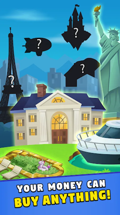 Playing this game, as the biggest money tycoon, you get to grow money, like you grow trees. Hire celebrities to help you with your endless amount of cash, build an empire of investments, cars, houses, luxury items like yachts and jewelry, you can have anything you want! For those who wish to be a billionaire, this clicker money game is a dream come true.