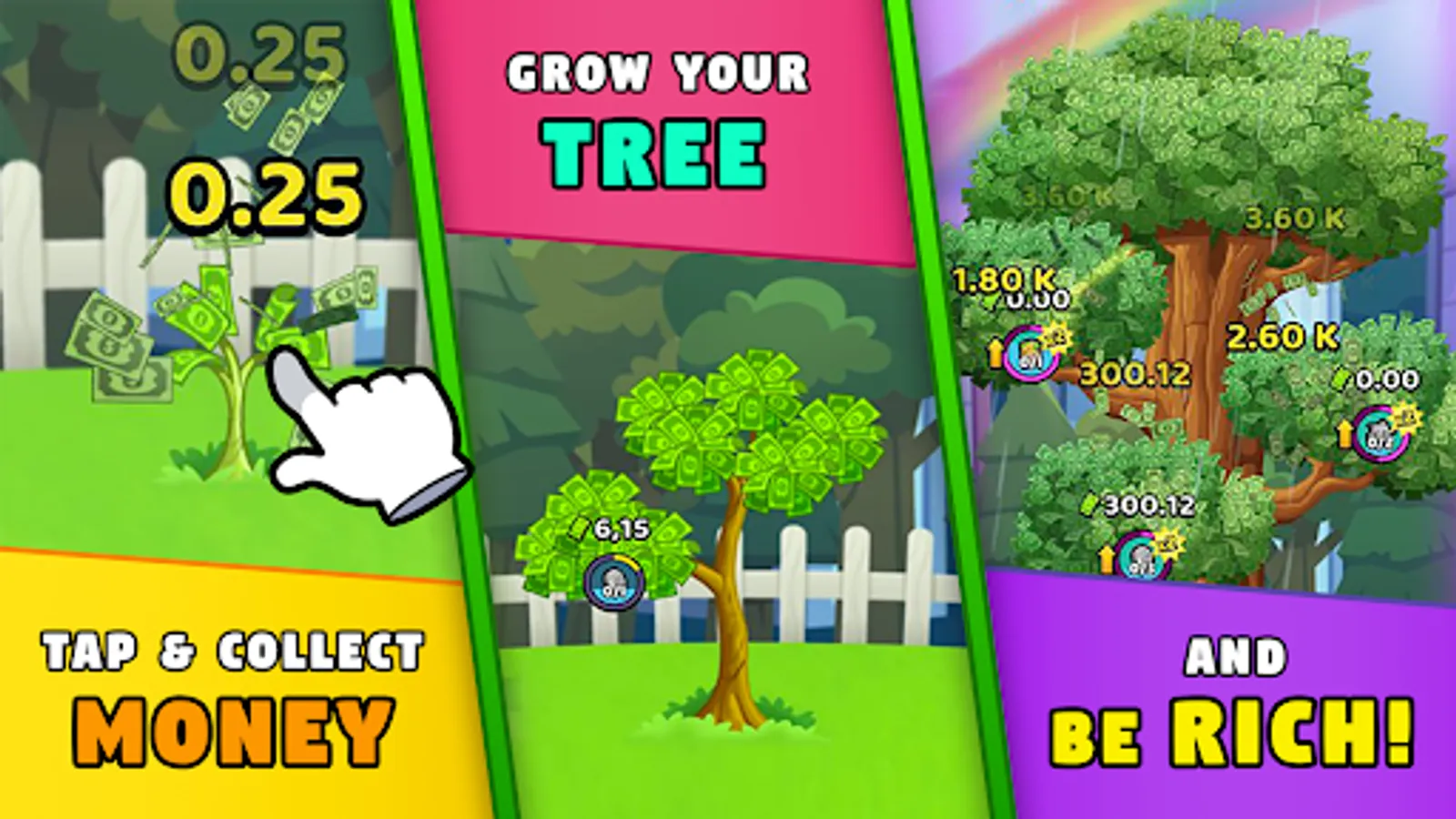 Grow money, like you grow trees. This clicker money game is all about collecting cash, gold and a whole bunch of money. Tap, tap, tap your tree to earn more rewards and help your cash garden bloom.