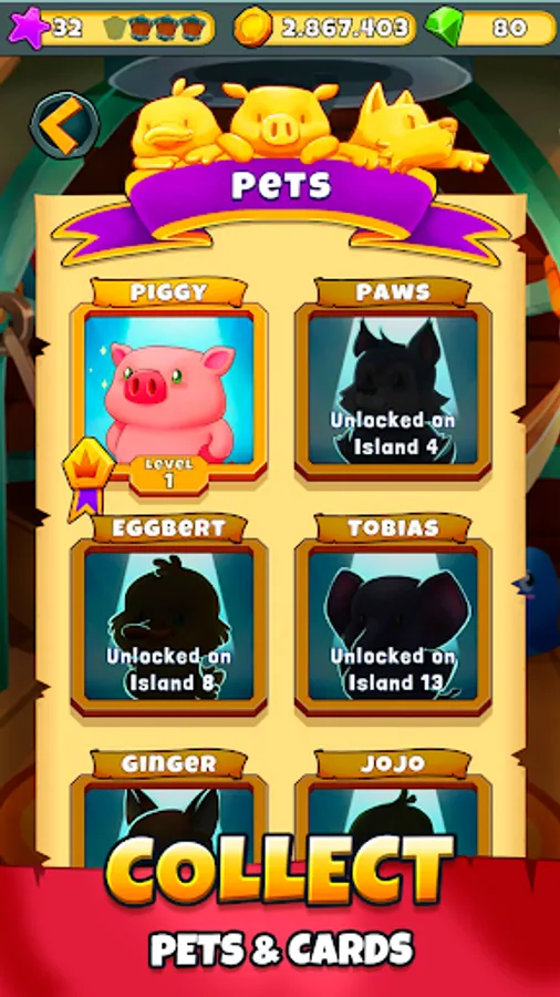 Complete pet quests for more rewards and free Spins! The more pets you get, the more spins and coins you can win!