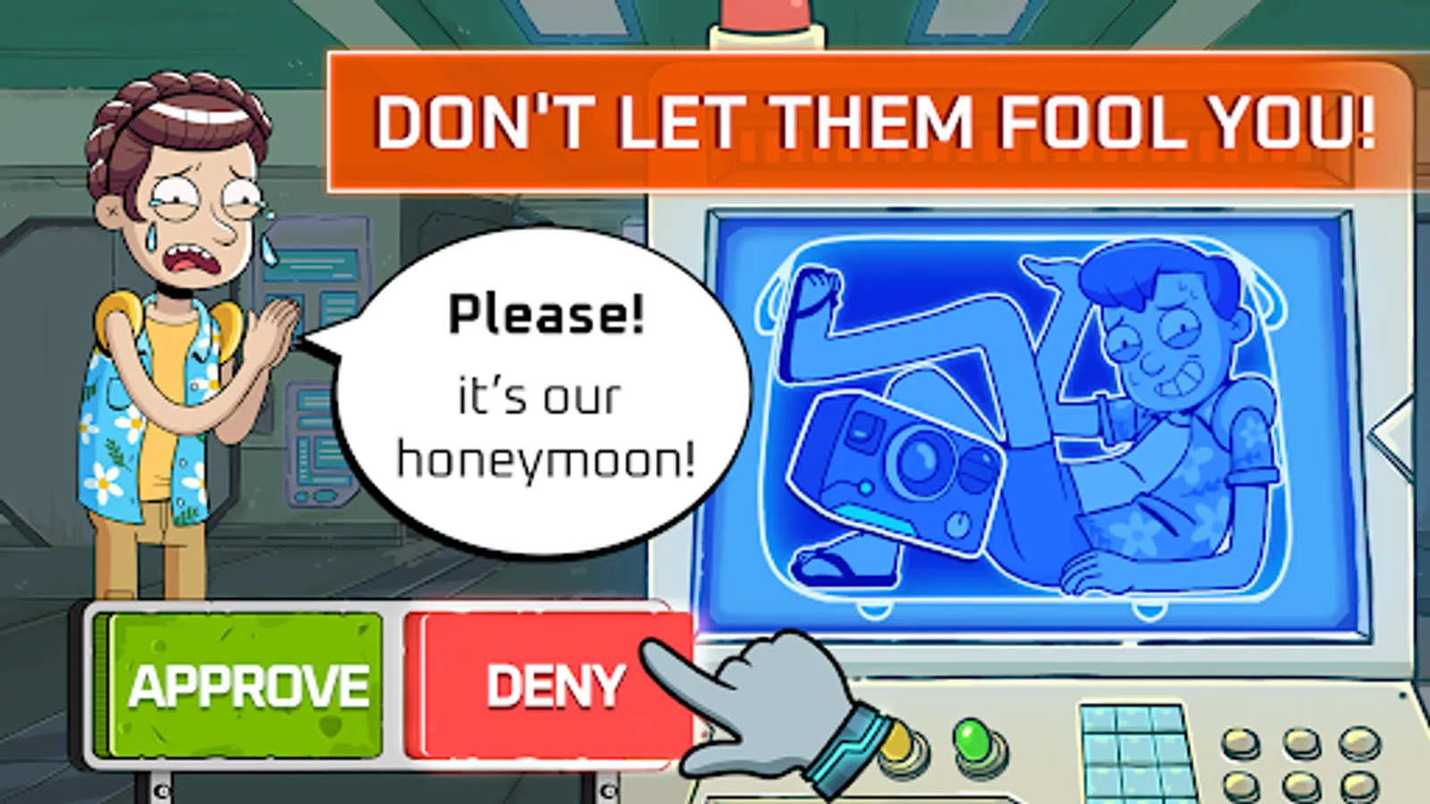 As an intergalactic border patrol officer, your main objective is to check the traveler's passports and discover dangerous objects, such as a... BANANA!