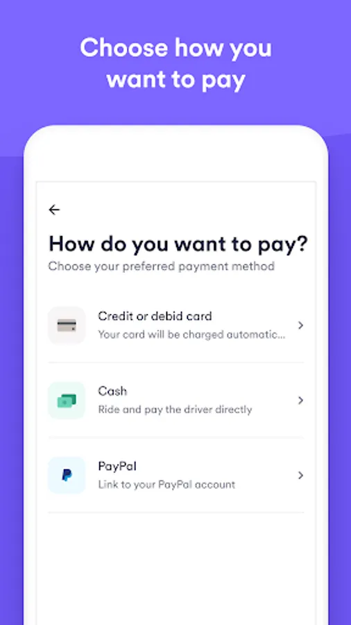2. Select how you want to pay: cash, card...whatever’s easiest for you!