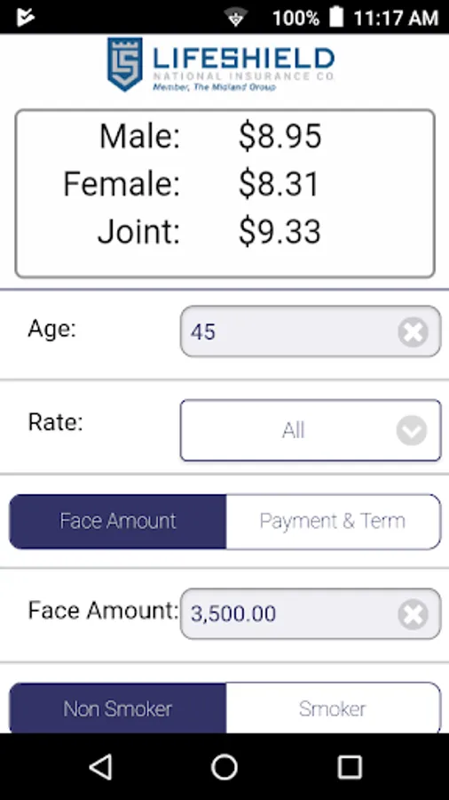 This app is only for agents selling LifeShield National Insurance Company Survivor Insurance. Quotes are delivered to the agent for consideration by the customer.