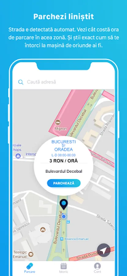 The application can currently be used for all public parking in Bucharest, Oradea, Ploiești, Focșani, and Câmpulung Muscel. Parking prices through the application and the minimum duration may vary depending on the parking location.