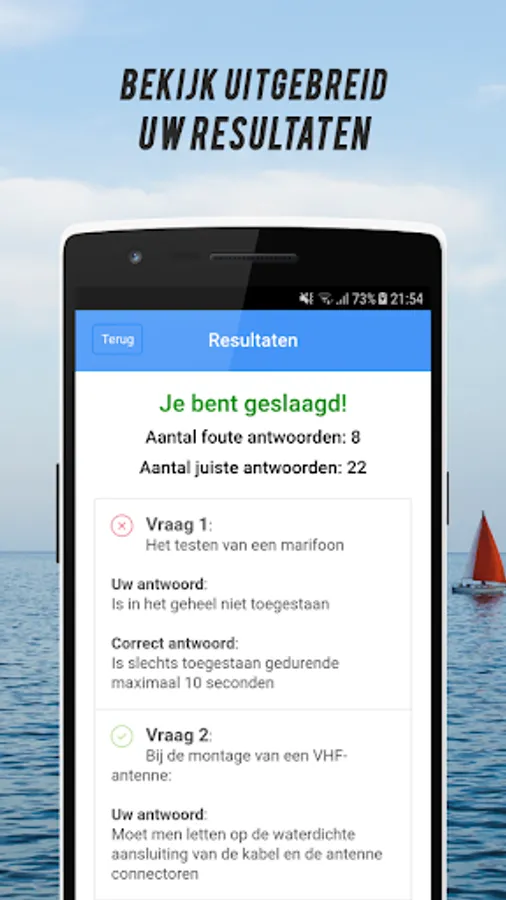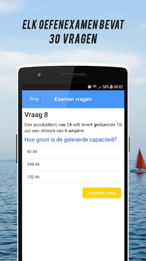 • The app offers a FREE test exam aimed at exam questions from Vamex. You can view your results after each exam you have taken. Would you like to take several test exams to better prepare yourself for the official Basic Maripony exam? which can! for only € 1.99 you have access to multiple test exams plus all test exams that will be added in the future you receive for FREE!
