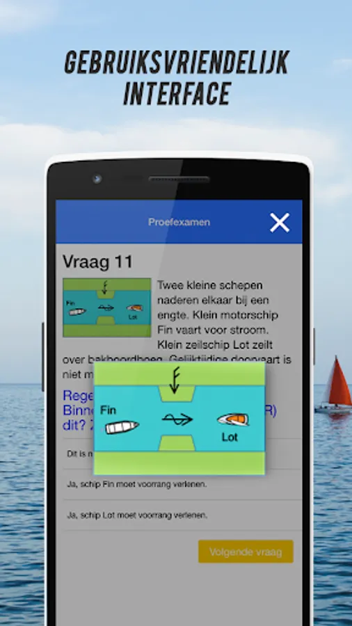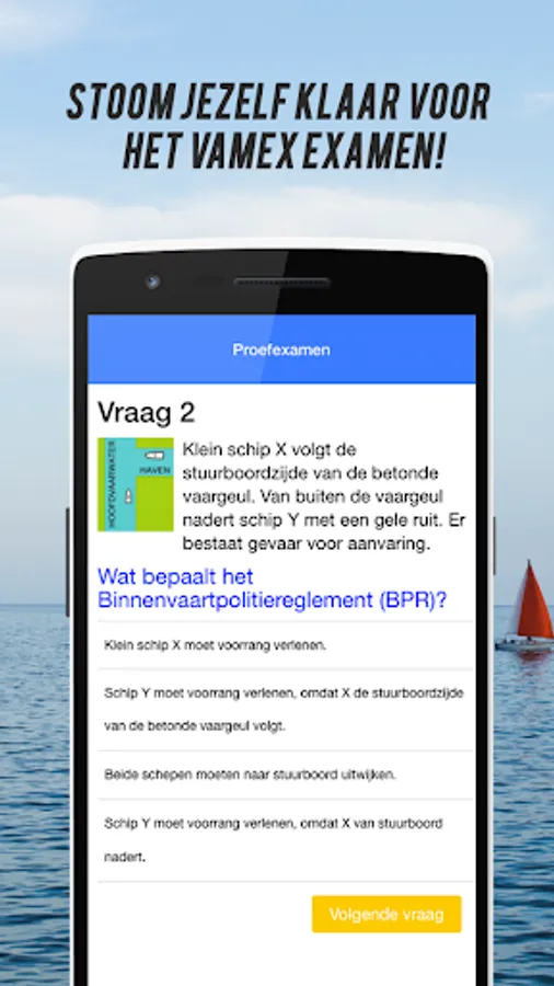 Sailing license theory is a sailing license app specially developed for the Dutch market, practice simple & effective for your small boat license (1 & 2). All questions in the test exams are derived from the official Vamex boat license exams. This allows you to optimally prepare for the sailing certificate exam.