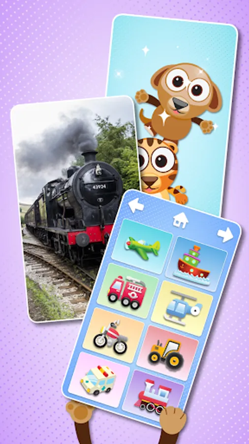 - HD images of more than 115 fun animals, cars, trains, music instrument, colors and much more.