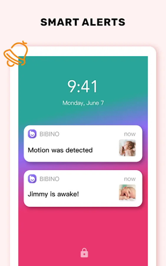 Bibino app notifies you through visuals and sound when your baby is awake. The app also alerts you in case of any issues.