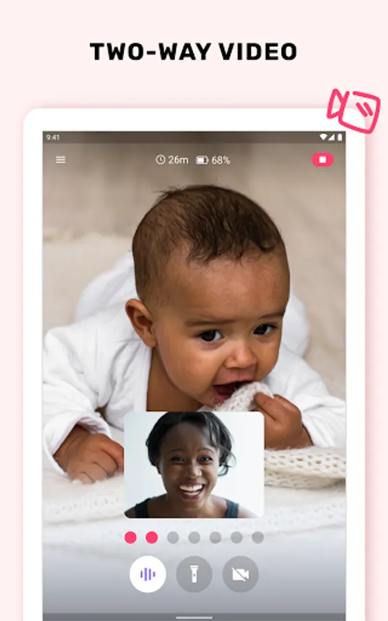 Bibino is a reliable baby monitoring app with great features. Bibino turns two devices (phones, tablets, computers) into a single baby video monitoring cam and is always at hand. Watch over your baby with video, and hear every sound from the child's room. Soothe your child remotely with your voice or lullabies. With Wi-Fi and LTE, 3G, Bibino provides you with unlimited reach.