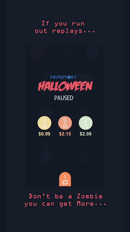 Halloween - PriMemory demands more of you every time you play. Each time you play, you get the chance to go back to previously completed levels and challenge yourself all over again. You will never get the same game twice; because of the zombie AI brain engine, each level adapts and changes each time you play. Relive the excitement by engaging with new variations every time. Revive your dead cells!