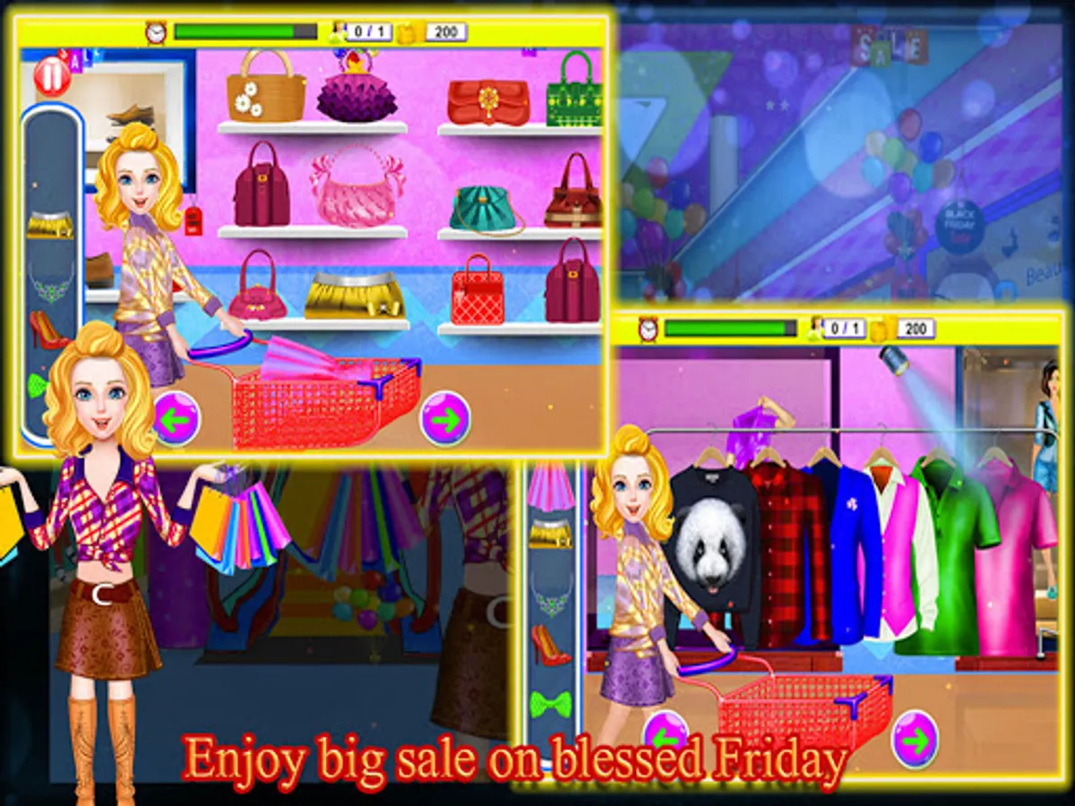 There is Good news for shopaholic girls. A big blessed Friday is on head everyone wants to go for shopping in real time shopping mall. Blessed Friday Shopping mall game is full of shopping fun because you will enjoy doing some shopping spree in this best cashier app as well as handling cash at cash register counter. The latest shopping mall is in heart of city and easily accessible to new customers. Super store cashier manager ensures all healthier rules and regulations in fashion store. Our “Blessed Friday Shopping Mall Game” for girls is offering latest trendy dresses, jewelry, fashion gadgets and footwear. Rush to this real time shopping mall and fulfil your shopping fever. In our “Blessed Friday Shopping mall game” there are multiple shelves are full with Fashionista style designer dresses for girls and boys, like shirts, jeans, skirts, frocks, trendy footwear girl’s shoes and boy’s shoes, sun glasses, bows, ties, coat, sweater, all trendy items, fashion accessories, necklace, earrings, rings and bracelets.