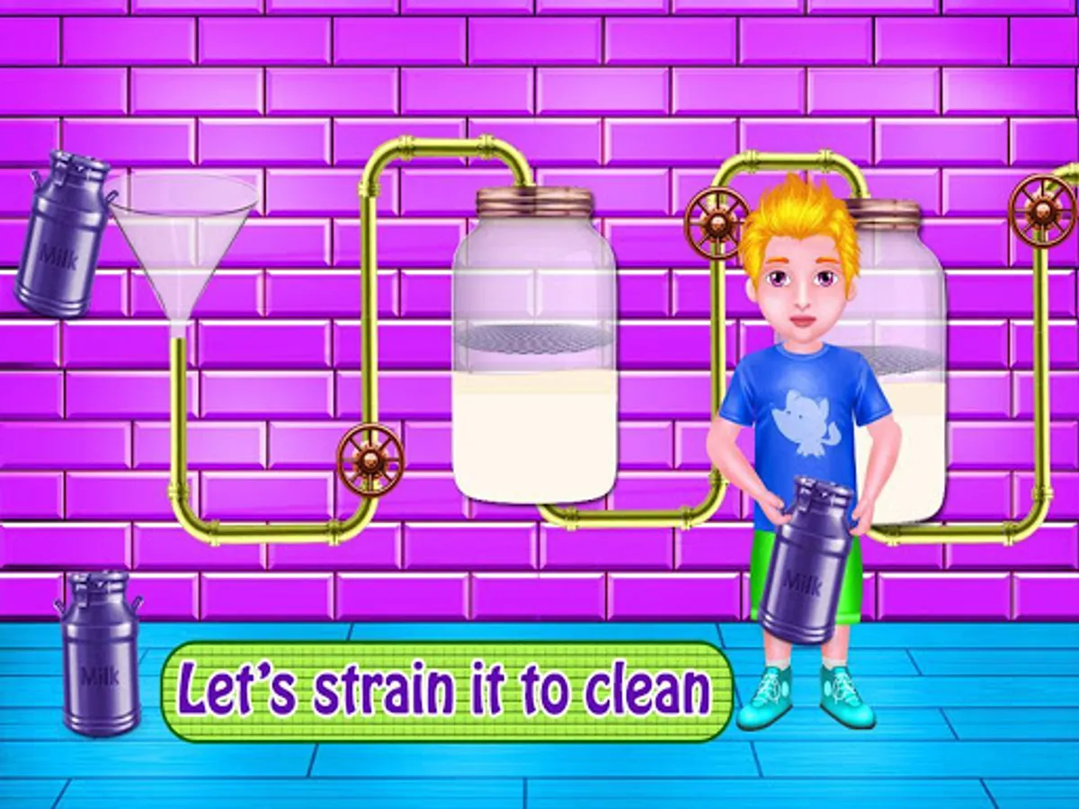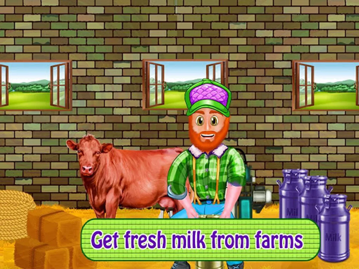 Be a milkman of your town and manage your own dairy farm and milk the cow. Take care of cows and other animals in the dairy farm and give them food before milking cows so that they can give you proper product. Milk management in the dairy farming is a crazy fun adventure for the little chef. So show your dairy farm mania and work as a milkman to get milk from dairy farm to your butter factory on the delivery truck. Your dairy product can have great sale on the bakery shop empire because of its standard quality. Now stop working as milkman and take the charge of factory manager and worker for the manufacturing of dairy product in the butter factory. Once you have delivered the milk in the factory on the exporter truck, start cooking milk for making butter. Strain the milk and filter it to make it pure and germ free. Start boiling the milk in a big container for cooking butter in the milk factory’s kitchen.