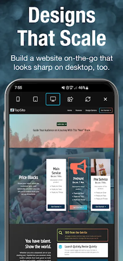 TapSite helps you create and manage website pages directly from your smartphone or tablet. Take photos in the field, switch out versions for different job apps, brand with a custom domain, and much more. Two websites are included with each subscription, and subscribers can share access with others, so if you become a TapSite pro, you can build for others also.
