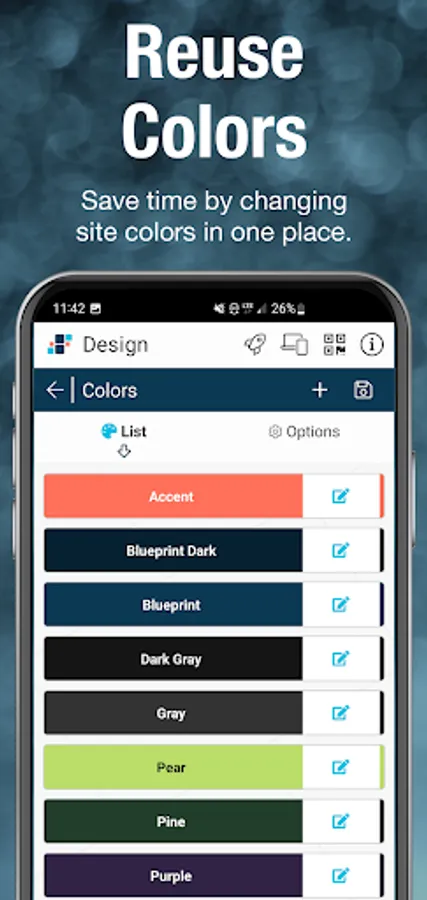 - Choose fonts and colors that work for you. If you want to rebrand, changing a color will change it everywhere that color is used.