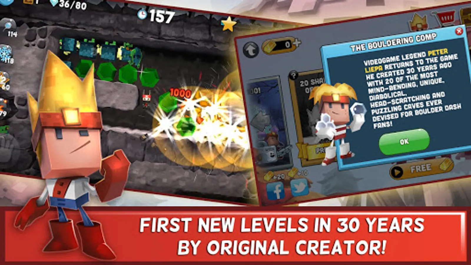 Please Note: Boulder Dash®-30th Anniversary™ is free to download and play, however, some game features and items can be purchased for real money. If you don’t want to use these features, please disable in-app purchases in your device settings.