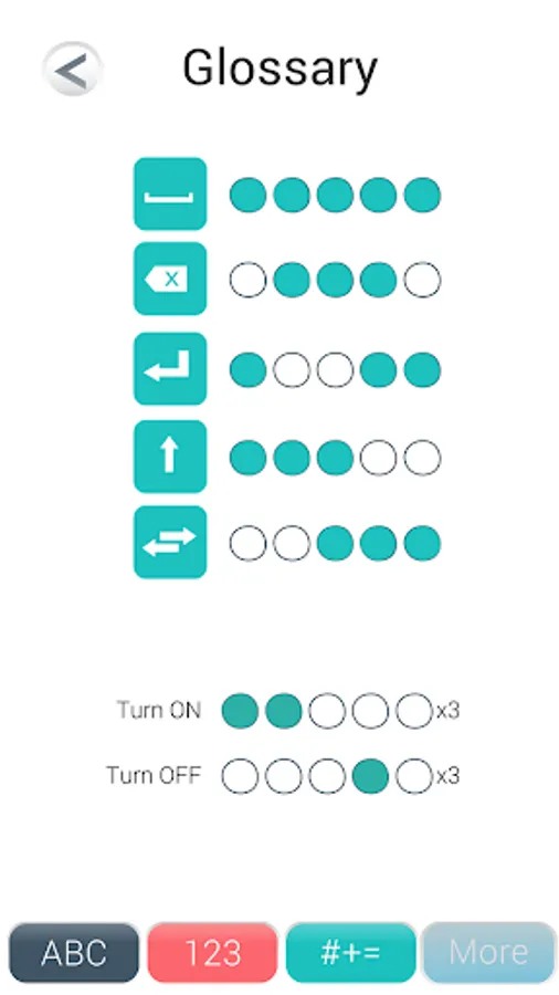 TapGenius breaks down the alphabet into eight ways to remember "tap-sets". The learning system combines musical and visual memory hints for each set.