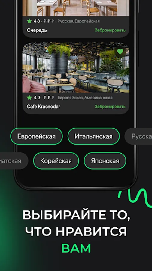 Form your preferences in the application by adding establishments and dishes to your favorites.