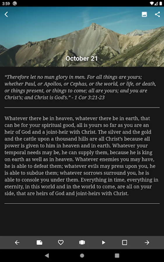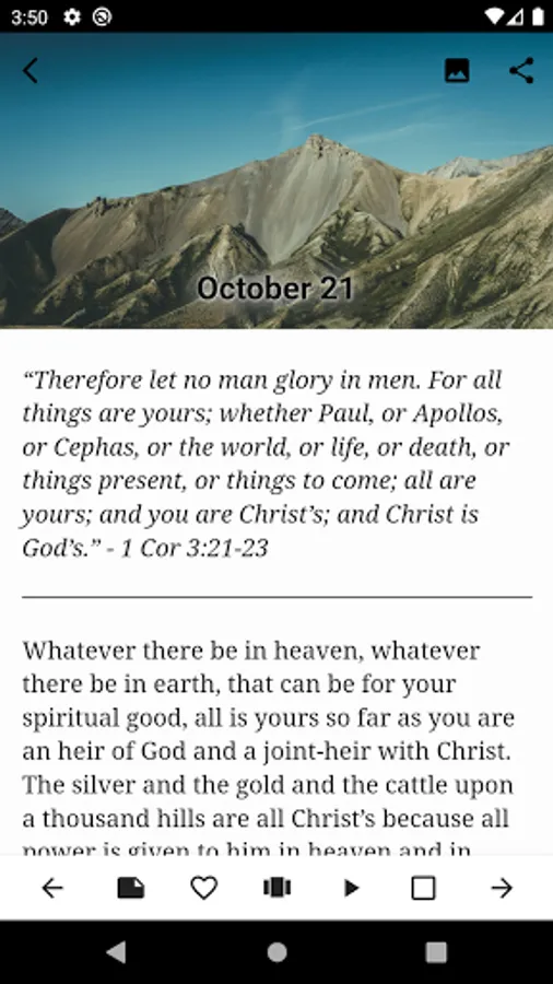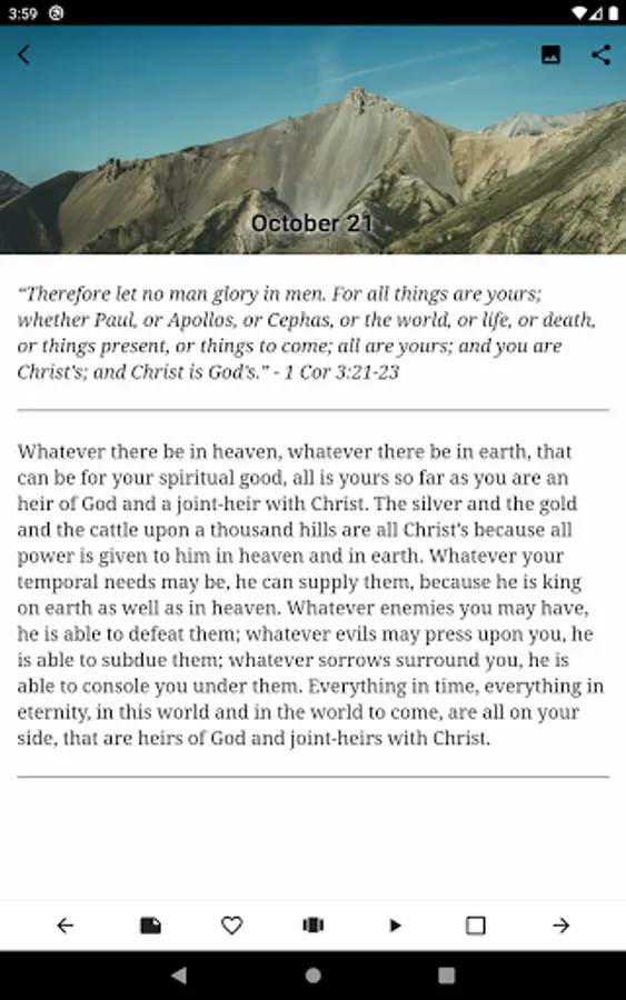 A 365 day devotional app based on the timeless classic devotional writings by J.C. Philpot updated with digital features for today's smartphones and tablets. Be encouraged as you read the bible and pray daily using this daily devotional app.