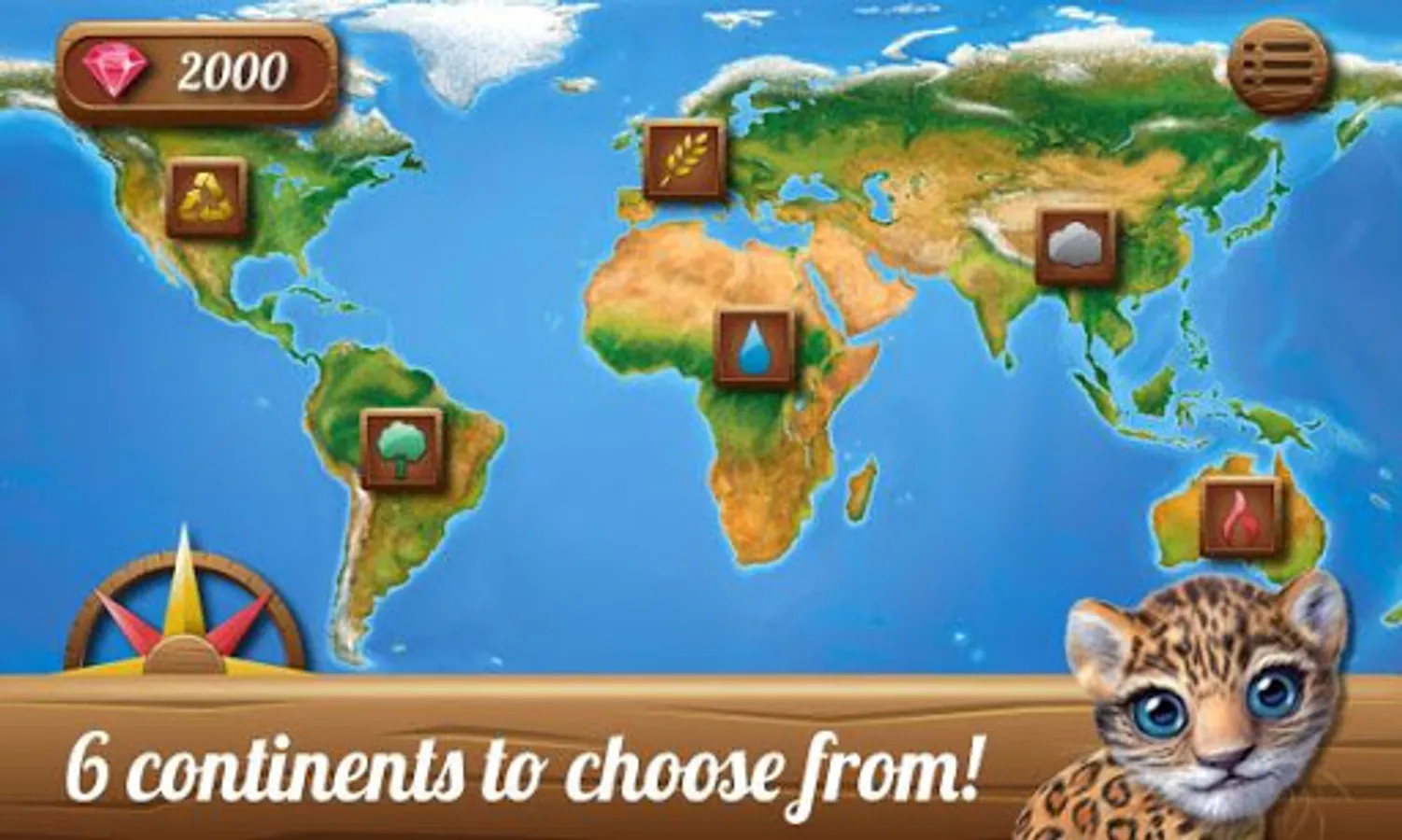 Move around the map choosing the continents and solving all the games to lower the Earth’s temperature and to complete the stickers’ collection with all the animals.
