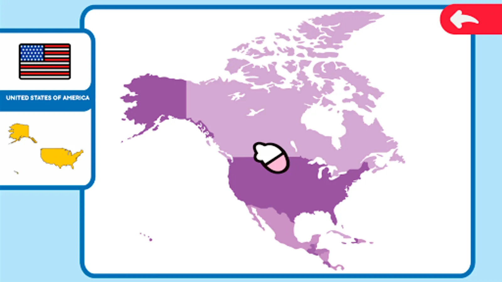 Prepare the suitcase and start your trip. You just have to select a country to visit... The United States, Italy, Germany ... .In each country you will know and follow its form and characteristics, draw its flag, place it on its continent and the most important thing ... you can get food, animals, monuments or dresses from each of them.