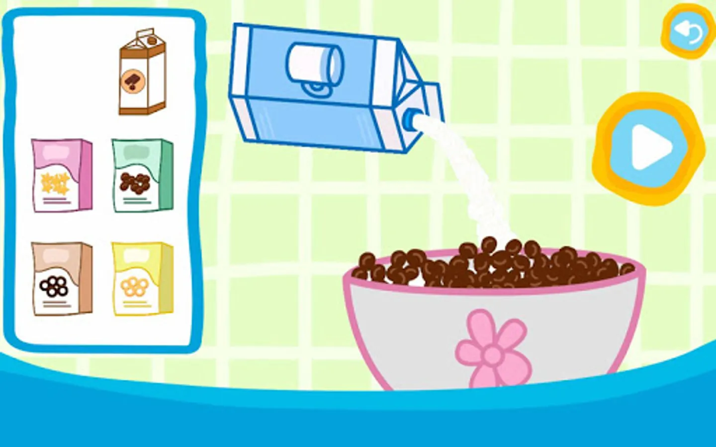 Learn the analogical hours – Prepare breakfast for the Kid-E-Cats with fruit, milk and cereal – Brush Candy’s teeth – Tidy the Kid-E-Cats’ room – Feed the Kid-E-Cats’ pet
