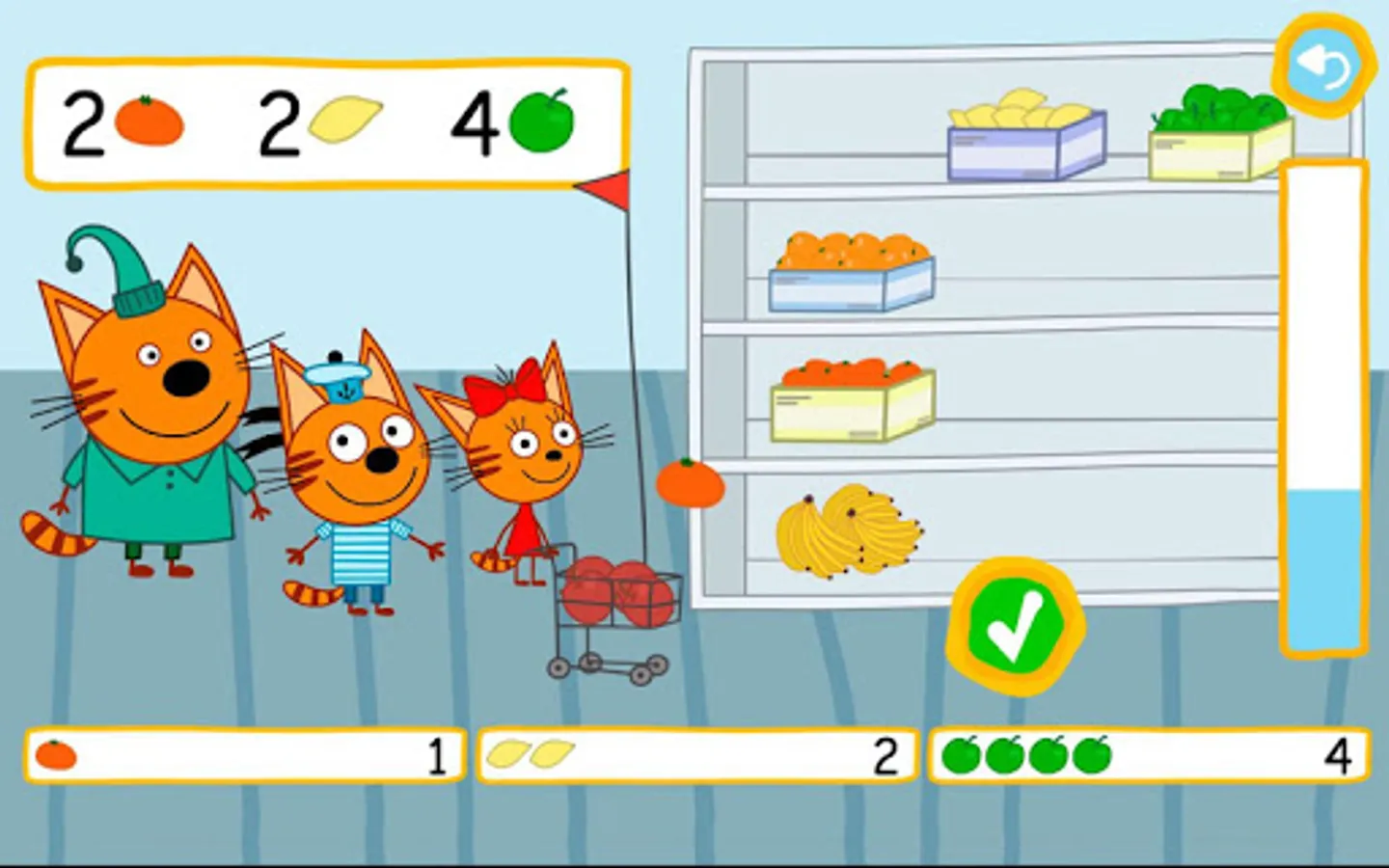 Do the school homework to learn letters and numbers – Paint and color the Kid-E-Cats’ workbook – Play a game of tic-tac-toe – Cook jam with fruits – Prepare Cookie’s bath so that he is very clean – Help Candy to fall asleep by counting sheep.