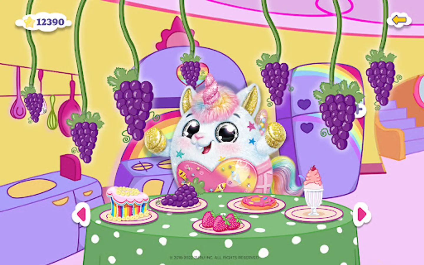 It’s time to eat and Unicorn is hungry. In the Rainbocorns pantry you will find salad, juices, candies, pizza, eggs, cakes, sweets, fruit…