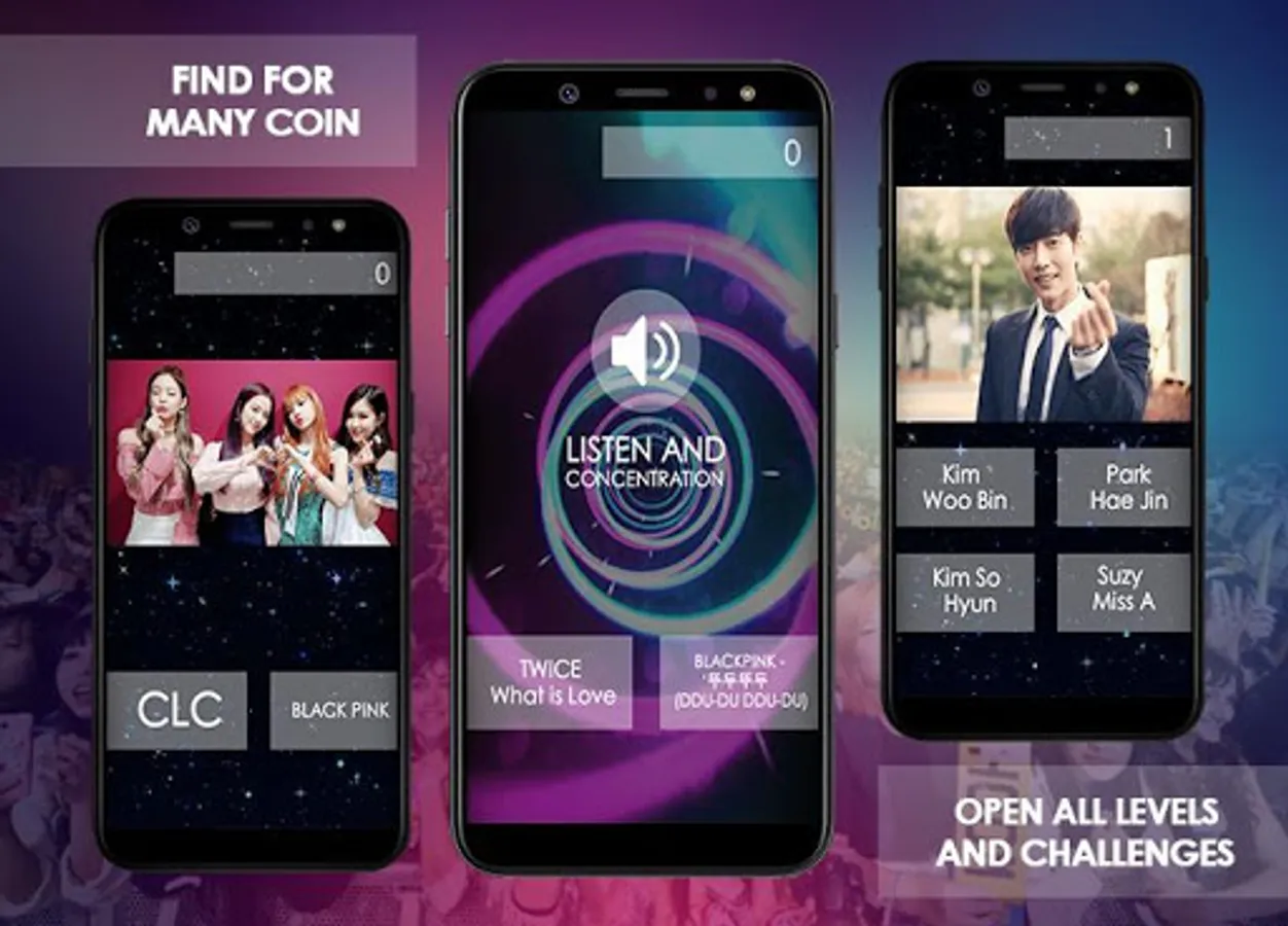 A veriety of fun challenge are guessing KPOP bands, guessing K-POP songs and guessing the names of KPOP artists. It will be very professional if you can open all the challenge that exist and succeed.